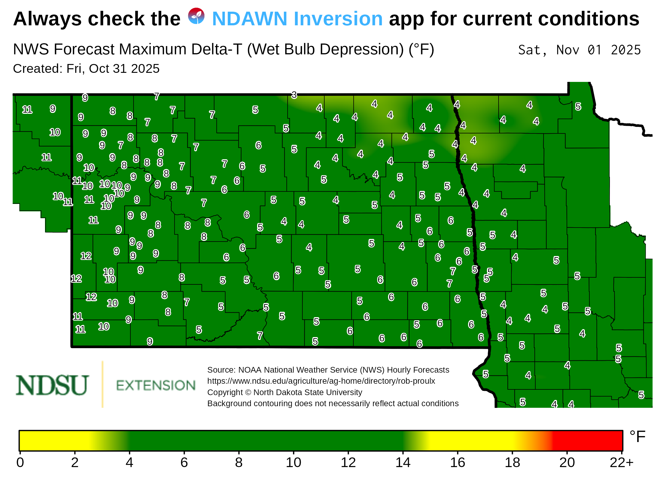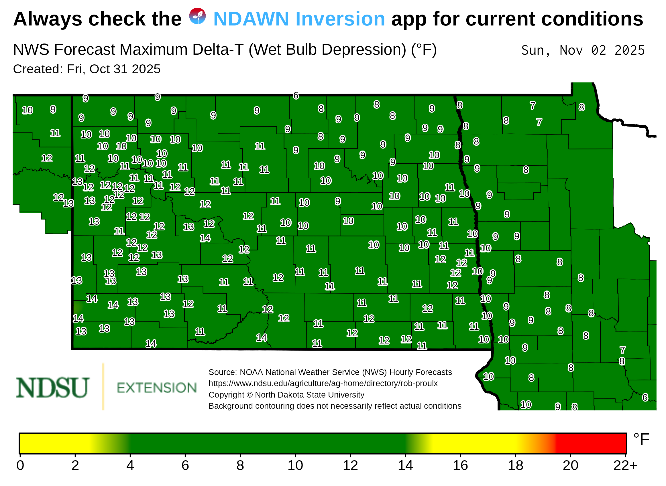 Visit the National Weather Service to access the local forecast for your area. Check NDAWN.org, NDAWN.info, or the NDAWN Inversion app for current local weather conditions.